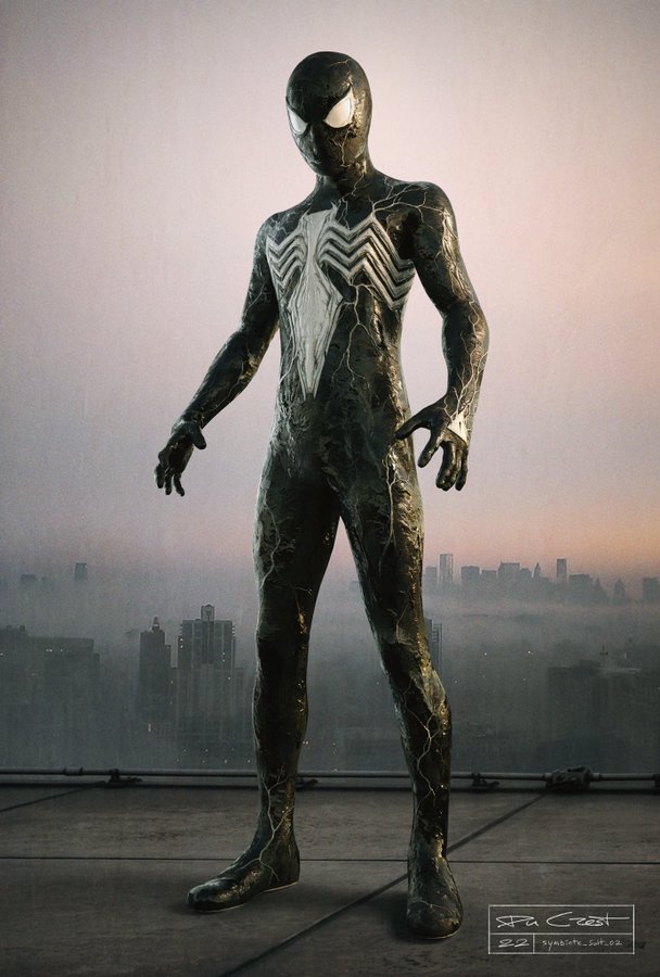 Colaborador da Marvel Studios, tendo trabalhado em ‘Homem-Aranha: Sem Volta Para Casa‘ e ‘Vingadores: Ultimato‘, Thomas du Crest compartilhou algumas artes onde mostra o herói (Tom Holland) utilizando o traje de simbionte.