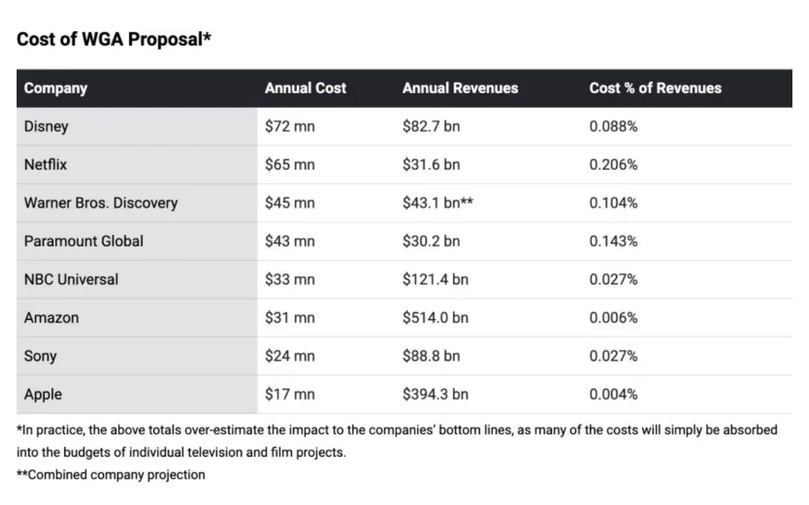 Deixando a atitude mais mesquinha e comicamente patética, foi quando analises financeiras revelaram o quanto custaria para cada estúdio caso concordassem com todas as demandas feitas na proposta atual: